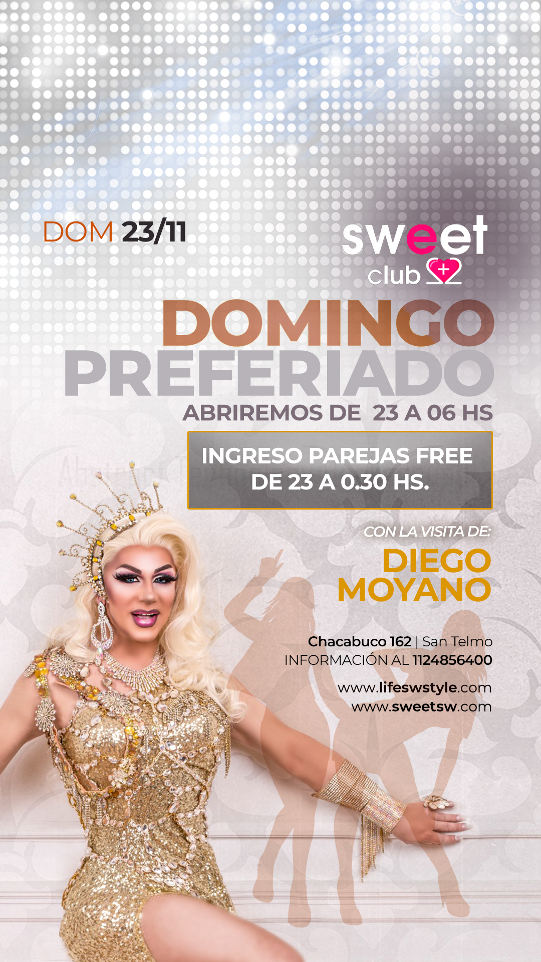 Este domingo 23/11 abrimos de 23 a 06 hs, preparados para una velada extendida que mezcla diversión, complicidad y ese ambiente único que solo se respira en Sweet. Es una noche pensada para disfrutar sin apuro, sin horarios y sin la presión de la semana que viene.